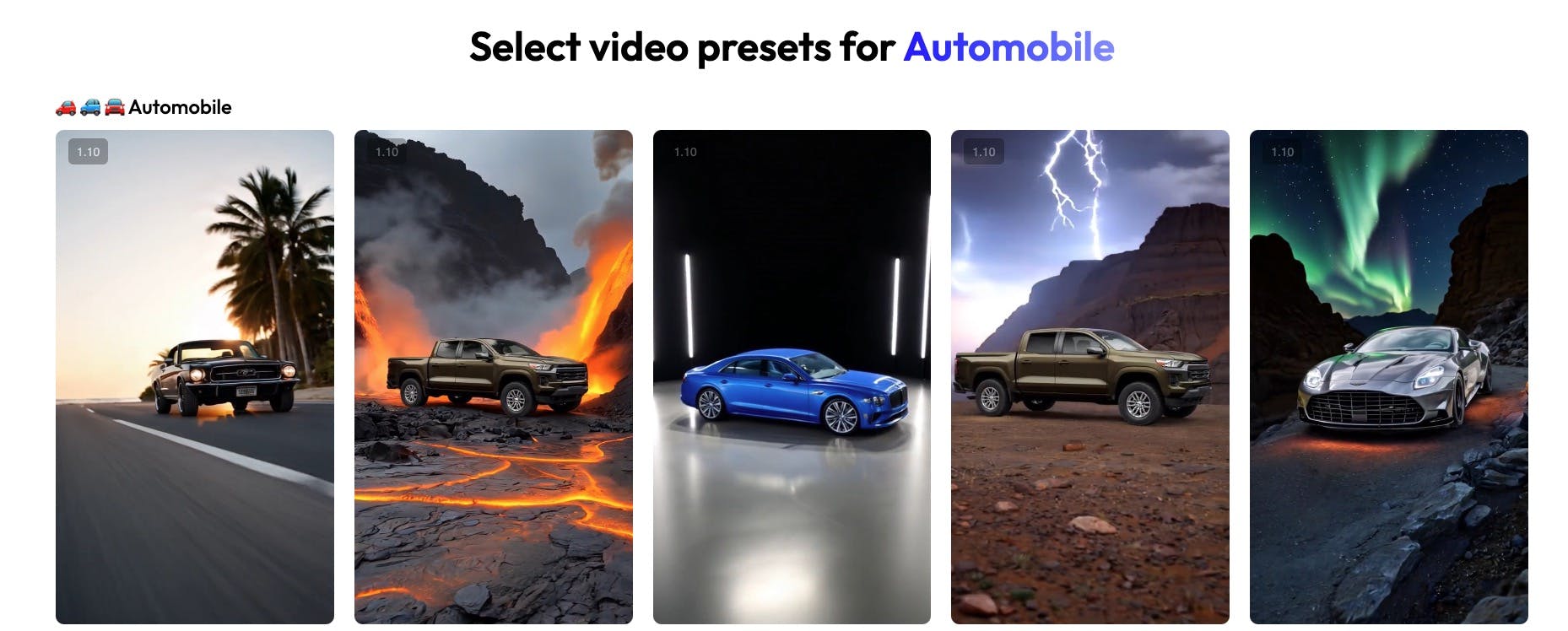 These videos highlight angles, features, and presence in formats designed to capture attention. Common use cases include social media ads and reels, featured vehicle listings, and launch or promotional campaigns, enabling consistent video usage without increasing production overhead.